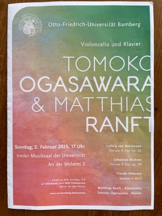 Tomoko Ogasawara (Klavier) & Matthias Ranft (Cello) Kammermusiksaal, Steingraeber Haus Bayreuth – 6. Juli 2017 um 1930 Uhr